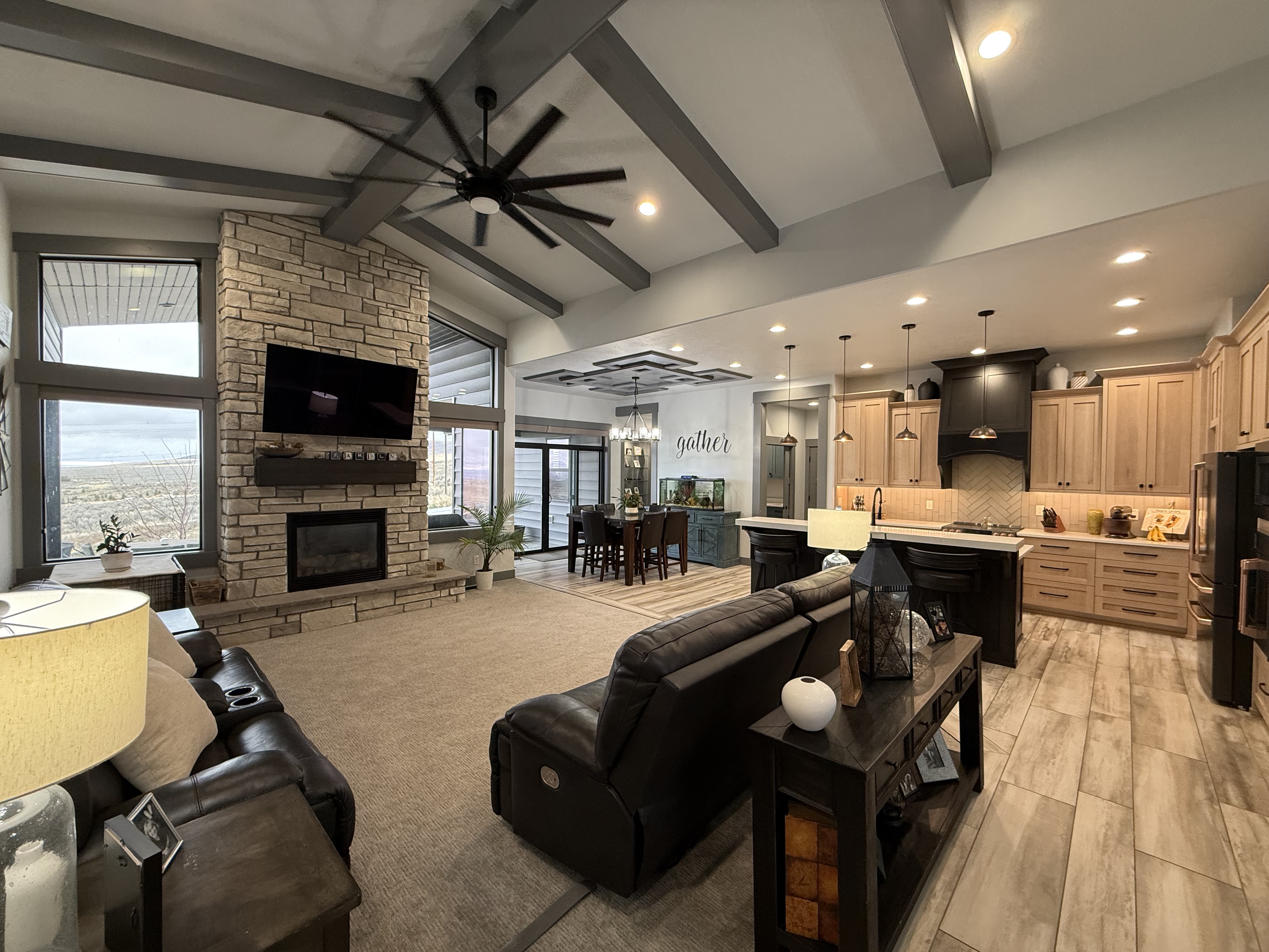 Superior craftsmanship and thoughtful, intelligent design come together beautifully in this exceptional home—made even more desirable with no backyard neighbors and breathtaking views. From the moment you step into the stunning entryway, you’ll notice the attention to detail and quality finishes that truly set this property apart. The spacious and inviting layout offers 6 bedrooms and 3 bathrooms, providing plenty of room for family, guests, and entertaining. The expansive basement family room is a standout feature, complete with daylight windows that fill the space with natural light and a cozy corner fireplace that creates the perfect gathering spot year-round. A second gorgeous fireplace upstairs adds warmth and charm to the main living area. The kitchen and bathrooms showcase custom cabinetry, beautiful quartz countertops, and detailed tile work throughout. A luxurious walk-in shower, elegant niches, and intricate ceiling trim details highlight the craftsmanship found in every corner of the home. The well-designed mudroom includes built-in cabinetry for added organization and convenience. You are sure to appreciate the oversized 6-car garage along with dedicated RV parking, offering ample space for vehicles, toys, and storage. Step outside to enjoy the concrete patio that opens to a fully landscaped backyard, complete with full vinyl fencing for privacy and low maintenance. With stunning views and no rear neighbors, this outdoor space is ideal for relaxing or entertaining. This home truly elevates everyday living with its combination of space, style, and superior finishes. Come experience it for yourself!